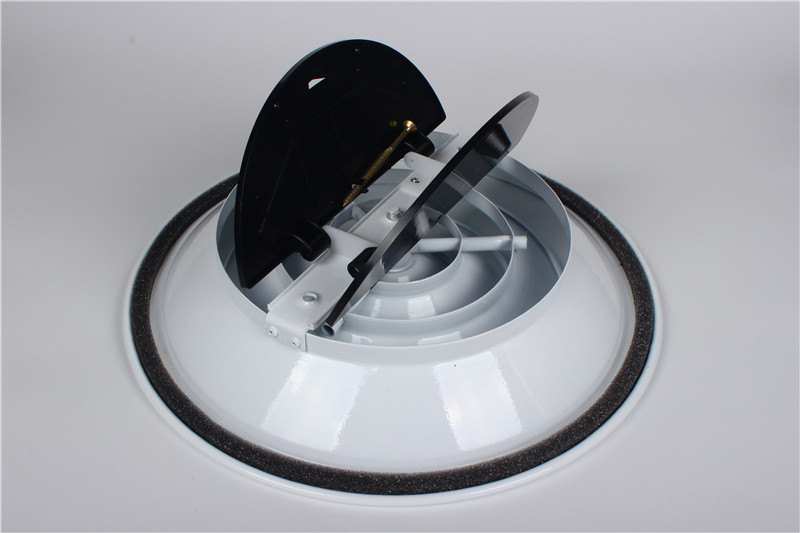 Assembled with integral butterfly volume damper made of plastic.